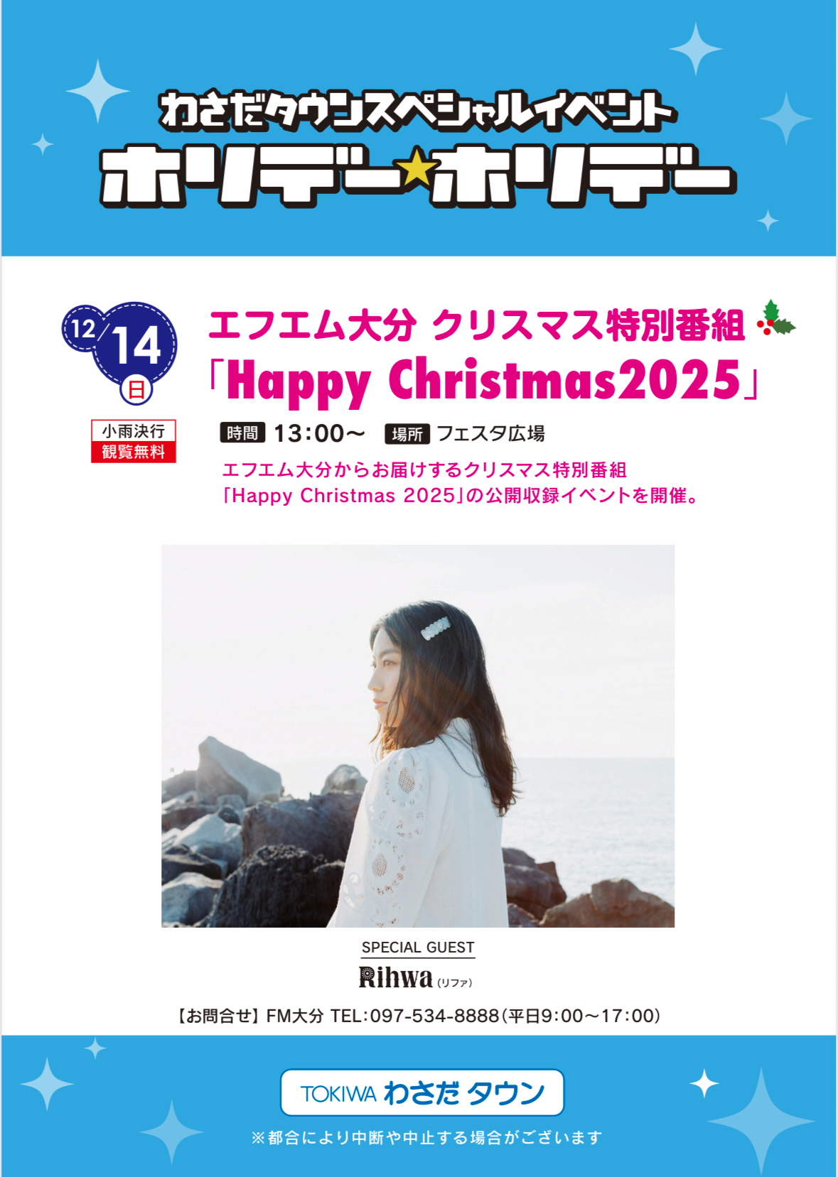 2025年12月14日(日)にエフエム大分 クリスマス特別番組「HAPPY Christmas 2025」公開収録への出演が決定しました!